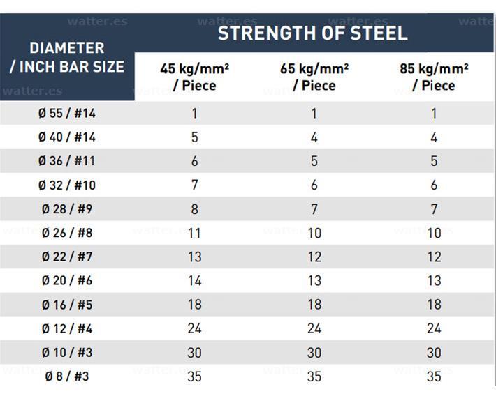 La fuerza de corte de la máquina depende de la resistencia de la barra de refuerzo y de su diámetro. La Matrix 55 puede cortar barras de refuerzo de hasta 55 mm de diámetro y hasta 85 kg/mm² de resistencia, lo que supera a algunos de los modelos más pequeños de la gama MATRIX. La precisa fuerza de corte de la Matrix 55 le permite reducir los residuos y minimizar el trabajo manual. Matrix 55 tiene una sensibilidad de corte de +/- 3 mm, lo que proporciona una gran precisión de corte.