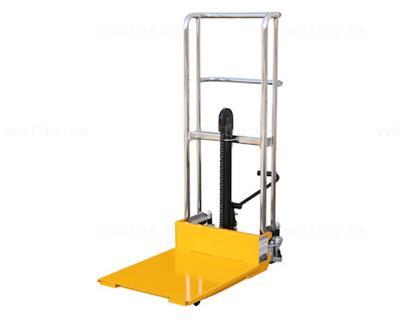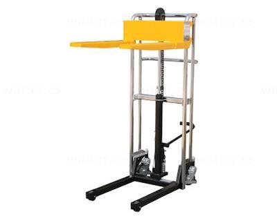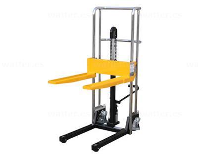 El apilador de palets está equipado con ruedas giratorias de 120 mm de diámetro y ruedas de carga de 75 mm de diámetro para facilitar la maniobrabilidad y la estabilidad. La plataforma de 580 x 650 mm y la anchura de la horquilla de 105 mm y la longitud de 650 mm facilitan la manipulación de palets de diferentes tamaños, mientras que la función de descenso continuo con manivela giratoria proporciona un control preciso y sencillo.