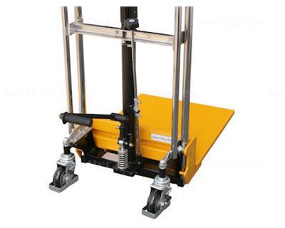 Este apilador de palets está equipado con una bomba hidráulica de alta calidad con válvula de sobrecarga y velocidad de descenso regulable sin escalonamientos mediante la rueda de ajuste. Esto garantiza una manipulación precisa y fiable de los palets en todo momento.