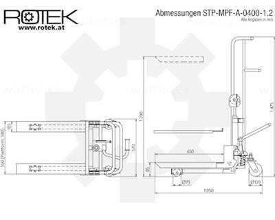 Este apilador manual de palets es una solución robusta y fiable para manipular palets pesados con gran precisión y facilidad. Con su altura máxima de elevación de 1,2 metros y su capacidad de hasta 400 kg, el STP-MPF-A-400-1.2 de RoteK es ideal para almacenes y talleres que requieren una manipulación de palets fiable y eficiente.